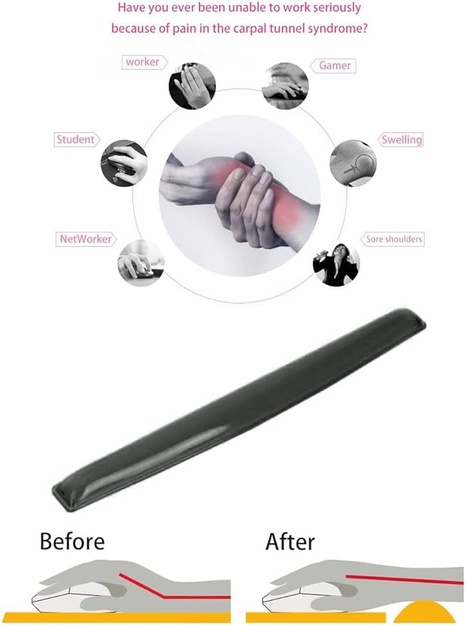 - 【Avoid injury & Relieve pain 】Soft gel wrist rest pad prevents damage from repetitive stress disorders ,it helps to avoid joint and wrist problems and relieve pain (rheumatoid arthritis, carpal tunnel syndrome).