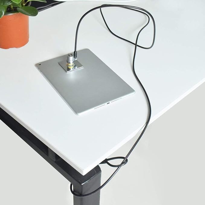- ✔EASY TO USE: For devices without lock slot: Bound the anchor plate, which is lined with strong adhesive, to the hard surface of the devices, then insert the locking head into the plate with keys and loop the cable around a fixed object. For laptops with a lock slot, simply insert the lock head into the slot, and then wind the cable around a fixed object