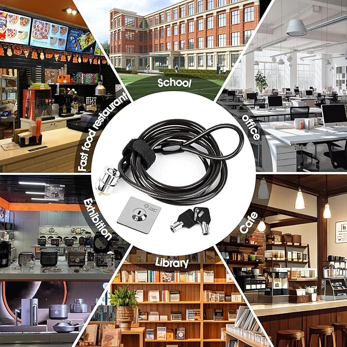 - ✔ANTI-THEFT: The lock head is made of super strong stainless steel and can be rotated 360 degrees. The cable is made of cut-resistant stranded steel and is covered with PVC coating. The extra length of 6.5 feet can help you easily move the device and fully meet your daily needs. Please note: The computer cable lock is fit for standard lock slots (7x3mm), not applicable to wedge-shaped lock slots and Nano-shaped lock slots