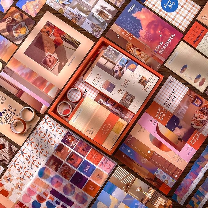 - 【SUNSET AESTHETIC STYLE】A large collection of all kinds of sunset style junk journal goodies! With a wide variety of aesthetic stuff inside, such as: colorful sky and clouds, sunset, light and shadow, street, room, coffee, flowers, dessert, etc. It is easy to get creative when you have beautiful scrapbooking supplies to begin with!