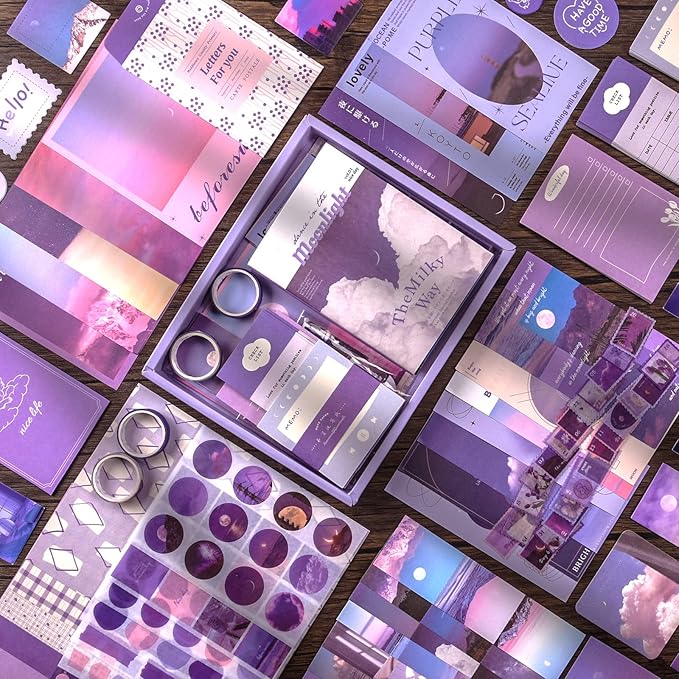 - 【PURPLE AESTHETIC STYLE】A large collection of all kinds of purple moonlight style junk journal goodies! With a wide variety of aesthetic stuff inside, such as: beautiful and dreamy sky, clouds, moon, ocean, landscape, flower, letter sheet, etc. It is easy to get creative when you have beautiful scrapbooking supplies to begin with!