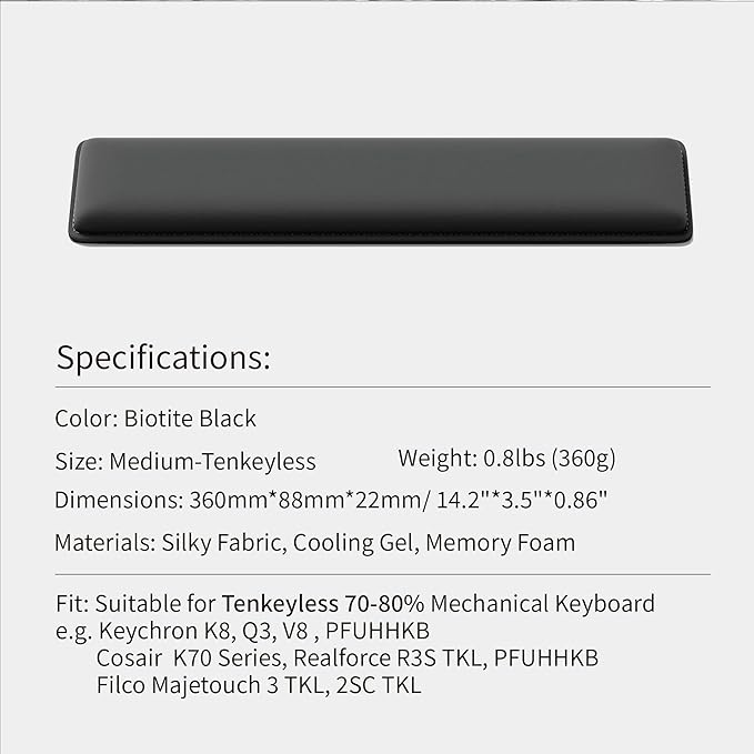 - -Dimension: 14.3"x3.5" | 22mm/0.9 in thick - Fits Tenkeyless (TKL/87%) mechanical keyboards (Length shorter than 15")