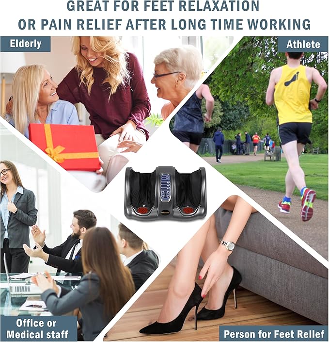 - ✅FEET MASSAGER MACHINE: Pressure nodes located under the soles of your feet stimulate the vital reflexology pressure points, also improves blood circulation, stimulate muscle recovery, provide pain relief. Elegant & shining machine cover, ideal gift for men and women on father's day, mother's day, birthday, Christmas, etc.