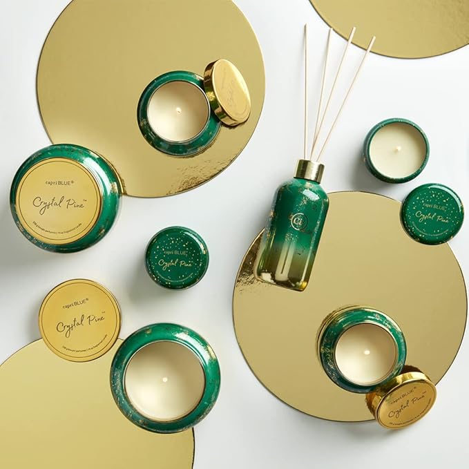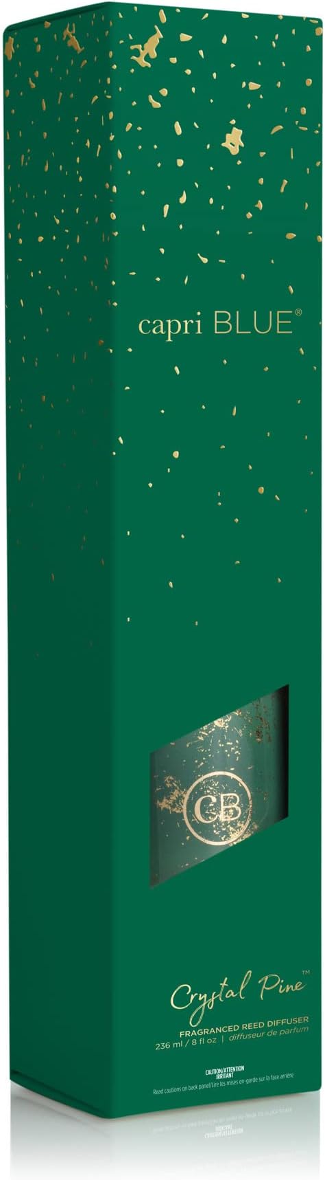 Capri Blue Glimmer Reed Diffuser Set - Includes Diffuser Sticks, Scented Oil, and Decorative Glass Bottle - Home Decor Room Freshener - Capri Blue Home Fragrance - Crystal Pine (8 fl oz)