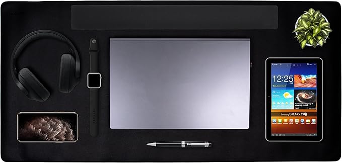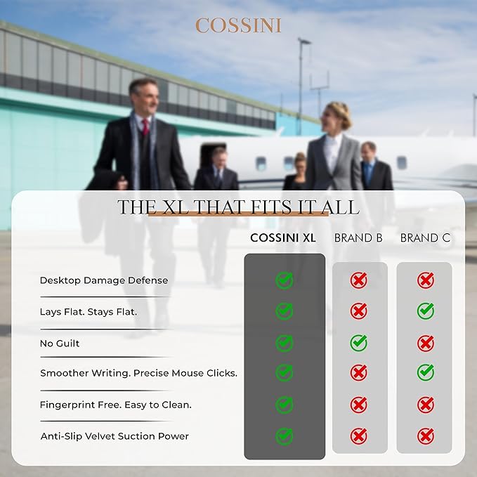 - Trick the eye, successfully: Sleek, sophisticated, illusion creating desk mat for desktop makes everything within its luxurious linear-defining box appear well-organized; to your boss, clients and coworkers. Cossini xl fits-it-all computer pads for a desk easily make your laptop, computer screen risers, keyboard, mouse, legal pad, and pens appear organized.