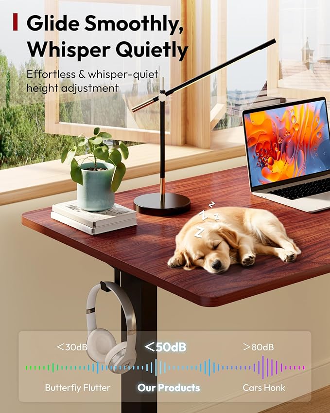 SANODESK Electric Standing Desk 48 x 30 Inches Whole-Piece Desktop Height Adjustable Stand Up Desk w/6-Button Controller Ergonomic Computer Desk for Home Office, Black Frame + Mahogany Tabletop