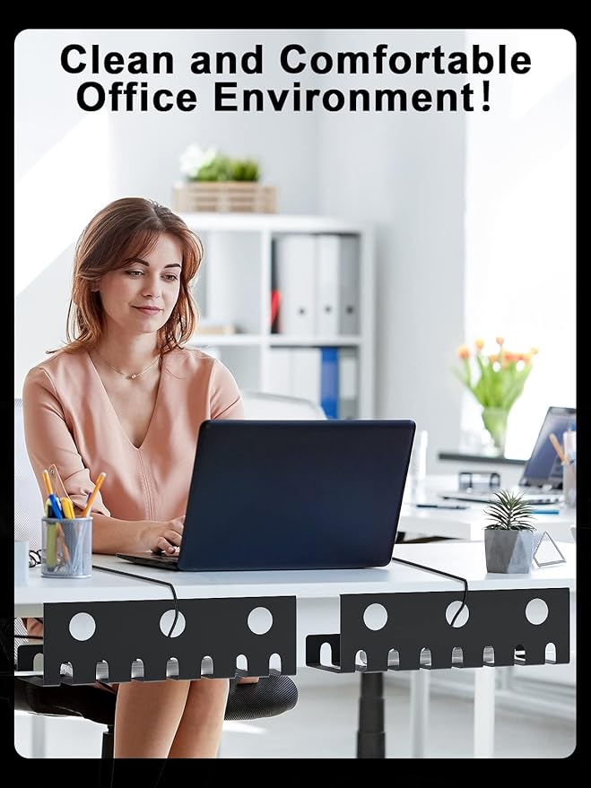 - 【High-Quality Metal Cable Management Under Desk】: The under desk cable management contains two U-shaped channels cord organizer for desk crafted from pure metal, offering a high-end texture and robust, stable construction. The rounded corners and smooth surface of our desk cable management guarantee no harm during use, providing a safer environment for you and your family. This under desk organizer is undoubtedly the optimal solution for under desk cable management