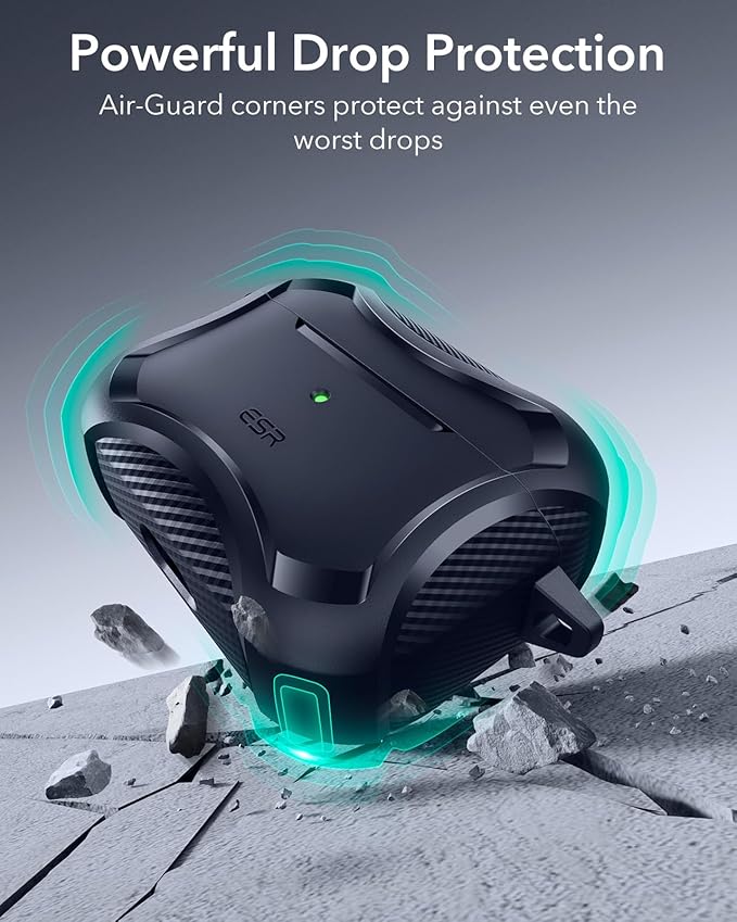 - Powerful Drop Protection: shock-absorbing polymer and Air-Guard corners keep your charging case safe from even the worst drops and impacts