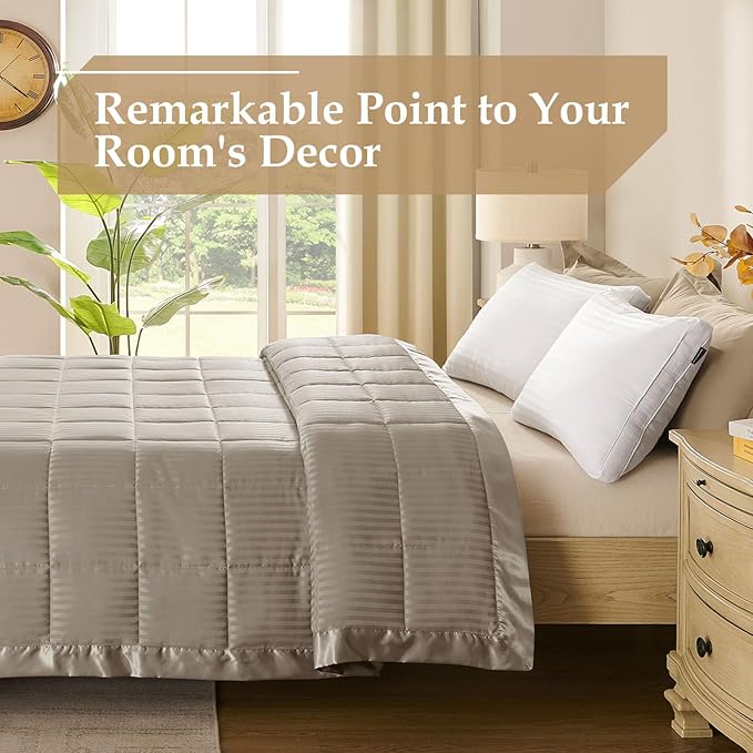 - Supreme Comfort: Our blanket featuring premium 135 GSM down alternative fill that stays fluffy and evenly distributed without clumping or odors. The elegant stripe jacquard design is finished with 3-inch satin binding for a luxurious drape, perfect for stylish bedding