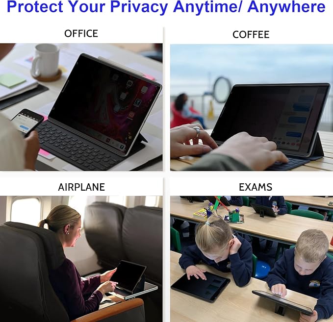 - 【Widely Applicable】This removable iPad privacy screen 10.2 inch provides the right amount of privacy for in public setting, office, classroom, library, subway station, hospital, financial institutions, business conference. Precise cutout and full coverage provide you with a pleasant user experience.