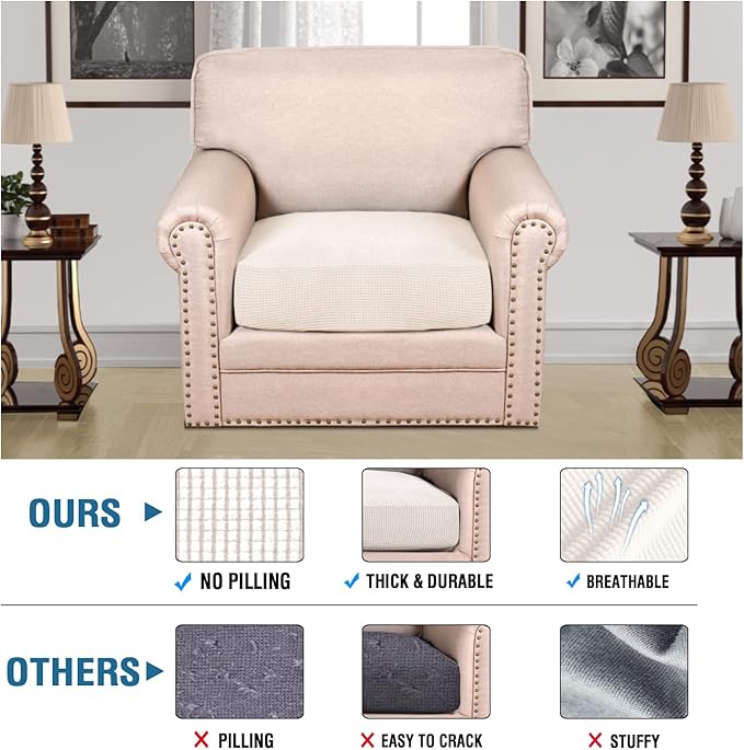 H.VERSAILTEX Stretch Couch Cushion Covers Individual Seat Sofa Chair Slipcovers Cushion Protector Cover Featuring Jacquard Textured Twill Fabric(1 Cushion Chair Cover, Ivory)