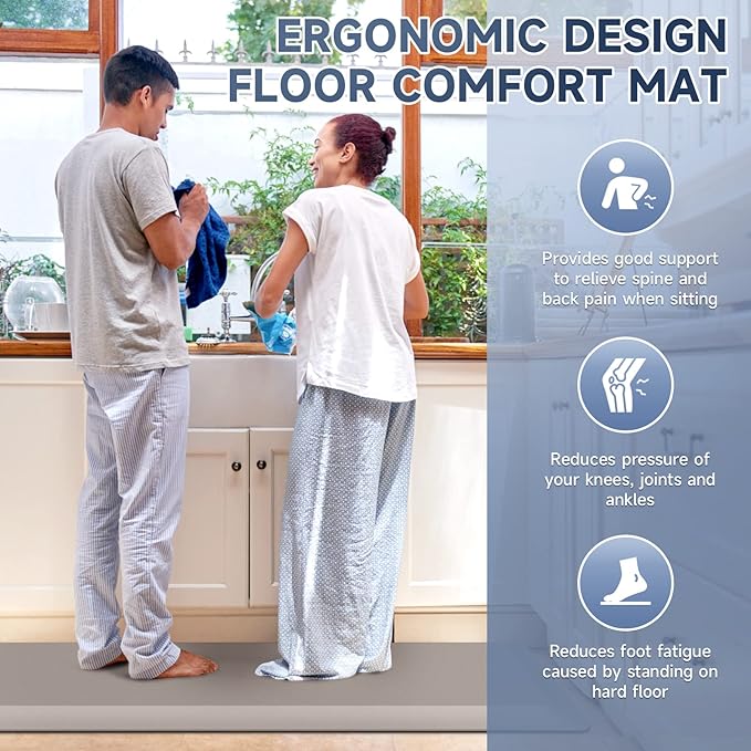 - 【Anti-Fatigue】Comfort floor mat provides comfort when standing. Reduces pressure on knees and ankles. Relieves back and spine pain when standing and relieves fatigue caused by standing for long periods