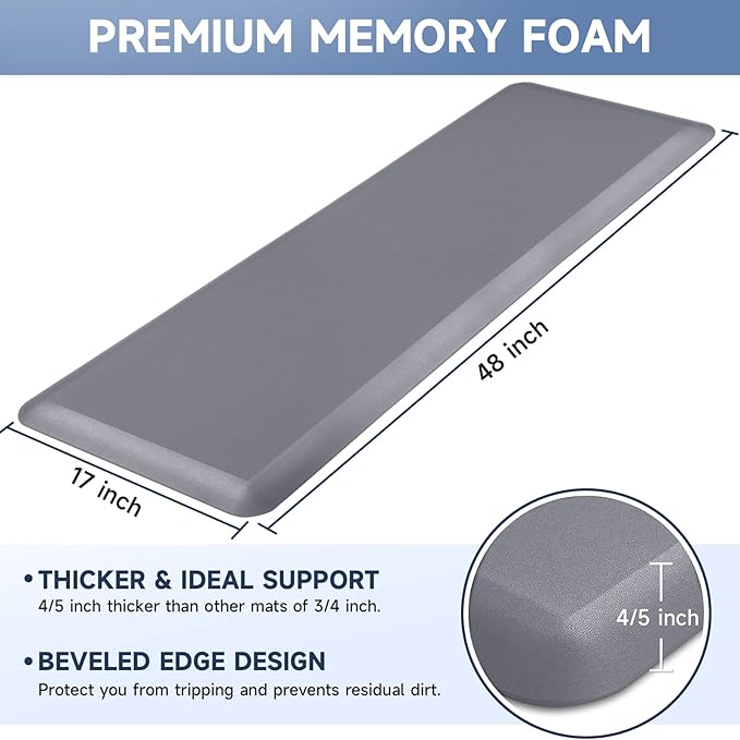- 【Thicker Mat】The StepRite kitchen mat is made of 4/5 inch thick memory foam for better support and comfort when standing. Measured as 17*28 inches. Suitable for kitchen, office, laundry room or any high-traffic area