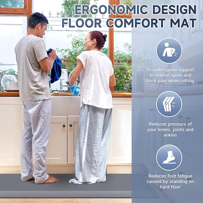 - 【Anti-Fatigue】Comfort floor mat provides comfort when standing. Reduces pressure on knees and ankles. Relieves back and spine pain when standing and relieves fatigue caused by standing for long periods