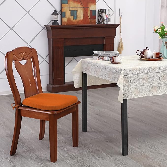 Seat Cushion with Ties for Kitchen Chairs - Memory Foam Non Slip Dining Room Chair Pad with Machine Washable Cover [16.5 x 16.2 Inches] - Orange