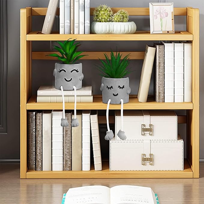 Zerzsy Faux Succulents in Cement Pots with Hanging Leg, Potted Mini Fake Plants for Desk Decor, Kitchen Shelf Decor, Office Decoration for Women, Bathroom Shelf Plants Decoration- Set of 2