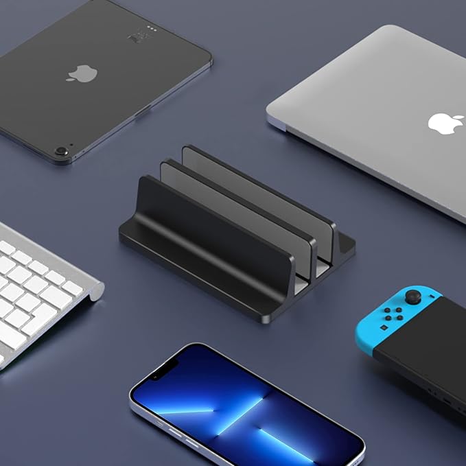 - Space Saver: Cradle up your devices vertically, build up a neat and organized space for your desk