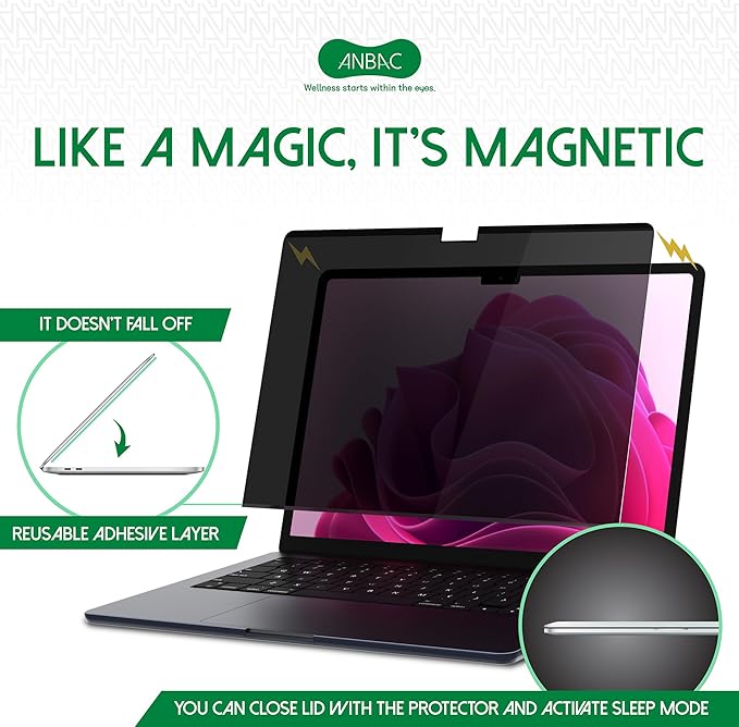 - ☘️ PACKAGE CONTENTS - Each package includes one ANBAC premium magnetic privacy screen protector which includes the best Korean-made core material, a storage pouch for hygienic and safe storage when the protector is removed from your device, and a quality microfiber cleaning cloth. You can buy it with confidence as we export our filters to America with sales of more than $1M / year.