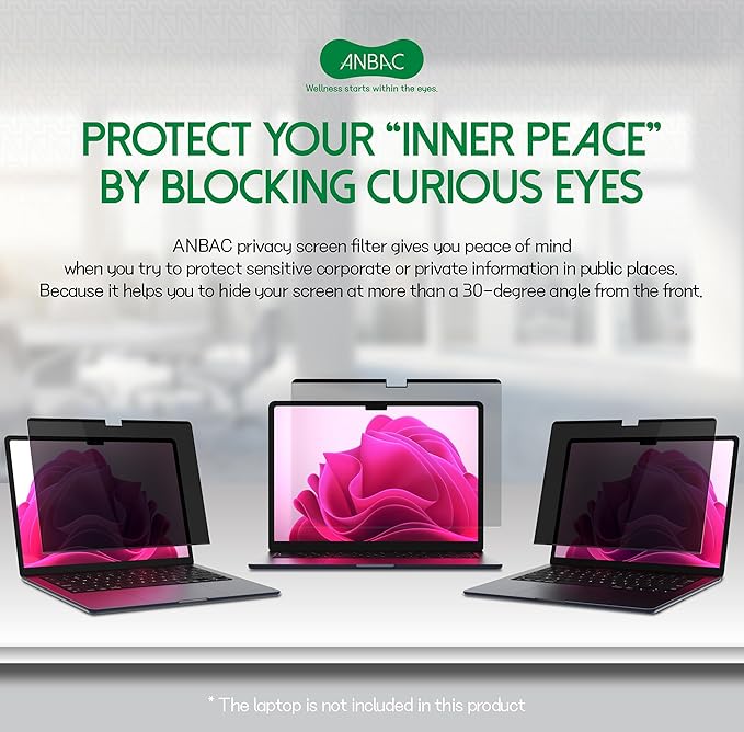 - ☘️ PEACE OF MIND IN PUBLIC PLACES - ANBAC removable privacy screen protector protects your screen from others’ view. The advanced micro-louvre technology of the film enables you to see a clear screen at the front and limits your screen’s viewing angle beyond 30 degrees to the left and right from your center view. Rest assured when you are trying to protect sensitive corporate information or work at any time, you’re in a public place. (Note: It only supports horizontal 2-way anti-peep)