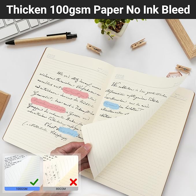 - 【Premium Quality】100gsm thickened inner page paper for smooth writing, no ink bleed. Sturdy stitched technology to prevent papers from falling apart and reduce mess. And the beige color of inner page could greatly protect our eyesight.
