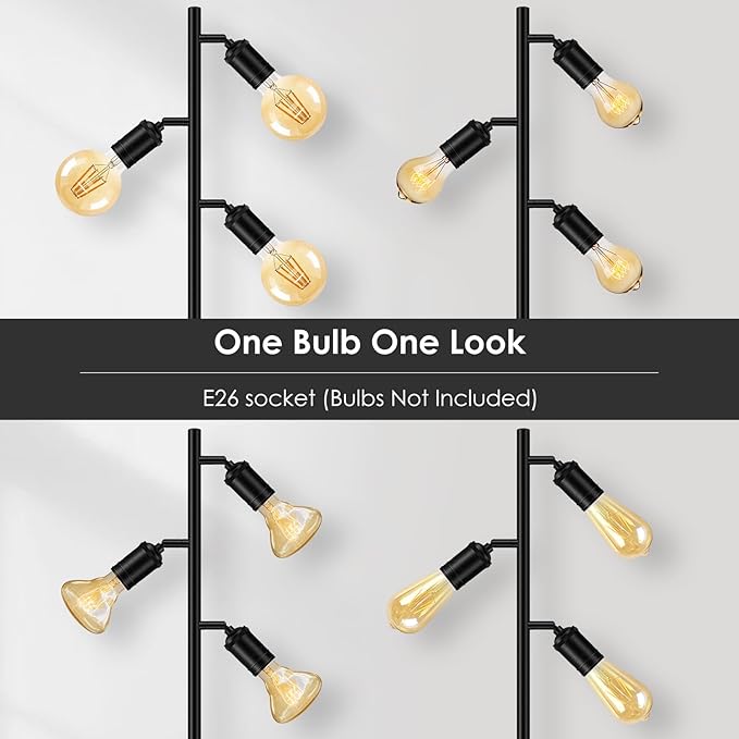 - You Decide the Style; Are you looking for a 3-head tree floor lamp with a unique industrial design and also a 100% match your home style; BoostArea industrial floor lamp is your ideal choice; This modern standing lamp comes with 3 built-in E26 Standard Base Socket (Bulb Not Included), which gives you much more space to design it according to your home style and your own taste; When using different shapes and colors of bulbs, the floor lamp gives various looks; Tips: Only for E26 bulbs