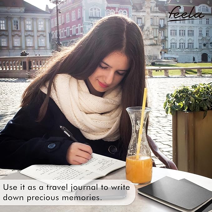 - Feela 16 Pack Soft Cover Journals include 16 black A5 college ruled soft cover travel journals. 250 GSM colored paper cover outside and 80 GSM smooth writing lined pages inside.