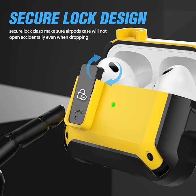 - 【Secure Lock】The rugged shockproof case is made of military-grade resistant TPU material, which protects your airpods pro 2 case from drops, scratches and bumps. The locking clip keeps your Airpods Pro case closed and secure the top lid from falling off.
