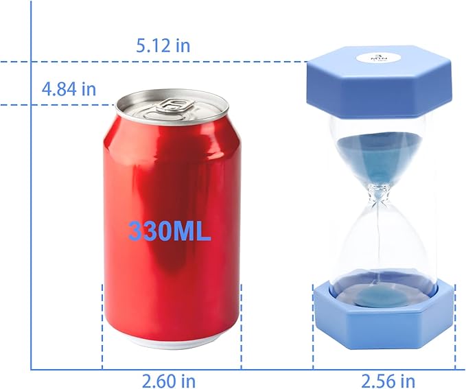 - ⌛HIGH QUALITY MATERIAL: The exterior of the hourglass timer is protected by ABS plastic, which is drop resistant and safe; the unique different color hexagonal cover with the same color of sea sand makes the child more interested in using it; the internal highly translucent borosilicate glass can clearly observe the flow of sea sand.