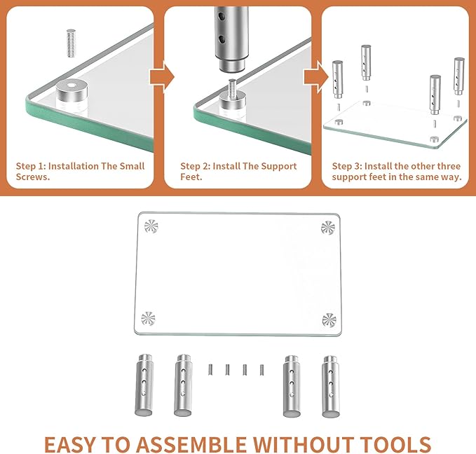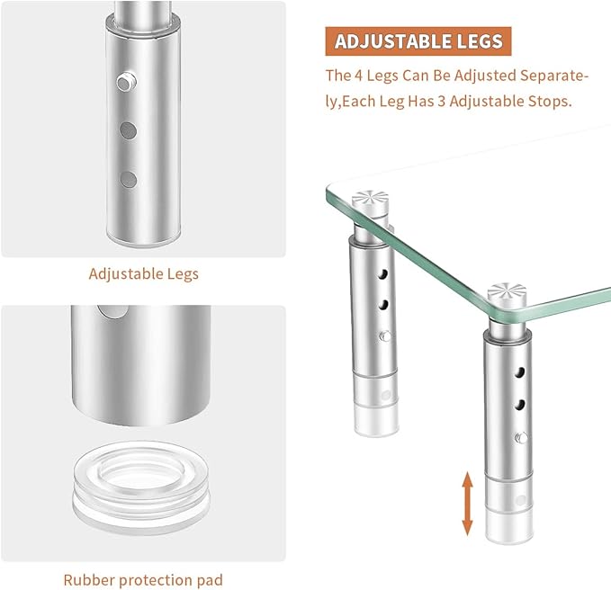 - EFFECTIVE HEAT DISSIPATION: The monitor riser is made of tempered glass and stainless steel legs to make your desktop clean and tidy