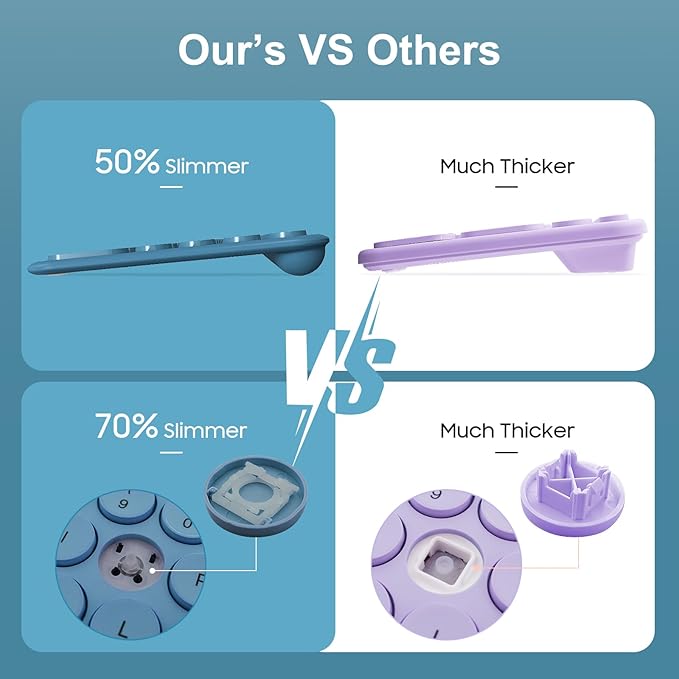 - š§µ [SLIM AESTHETIC KEYBOARD]: Adopt low profile layout and made of hard ABS material, the wireless keyboard is not only of a cute retro keyboard compact style, but also unexpectedly lightweight, making it easy to carry. The thinnest part is 0.15 inch.