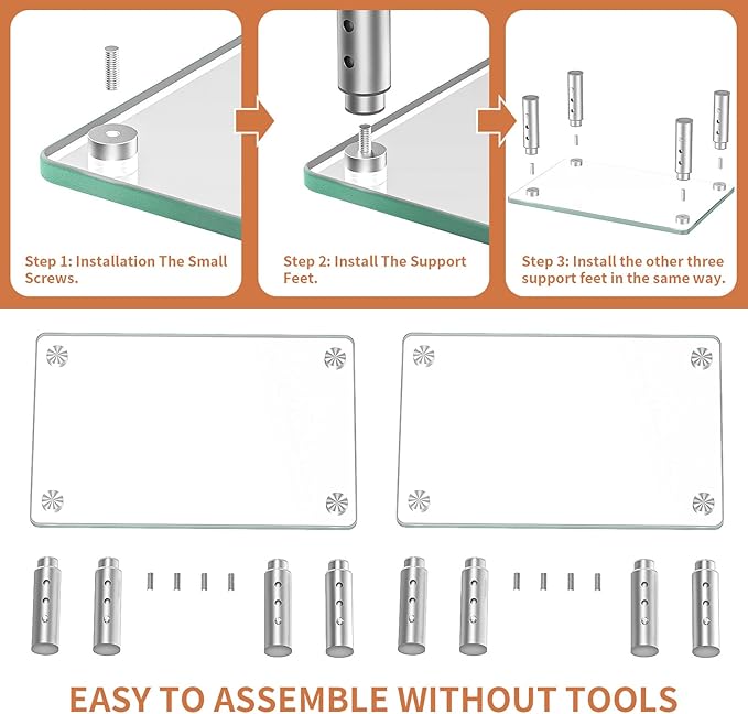 - Easy Assembly and widely usage: Combine the tempered glass and stainless steel legs through the screw, 2 Pack ,Can be used in Monitor Riser ,Printer Stand ,Computer Stand ,Laptop Riser,Desk Shelf