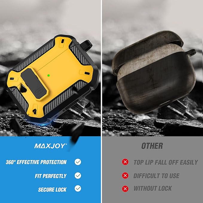 Maxjoy AirPods Pro 2nd/1st Generation Case Cover with Lock, AirPods Pro 2 Protective Case with Keychain Compatible with Apple AirPod Pro2 2023 USB C Cable 2022 Lightning Cable/ Pro1 2019, Yellow
