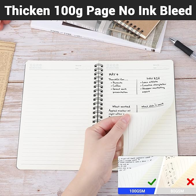 - 【Spiral Design】Can be folded freely without folding creases and facilitate you to tear pages.
