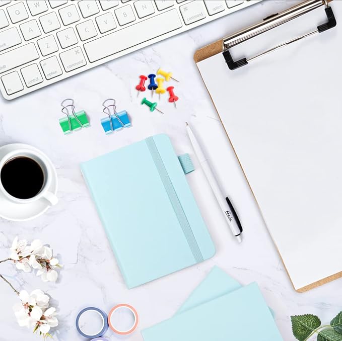 feela 3 Pack Pocket Small Notebook Journals, Mini Cute Memo Notepad Hardcover College Ruled Lined Journals with Pen Holder for Women Girls Office School, with 3 Black Pens, 3.5”x 5.5”, A6, Sky Blue