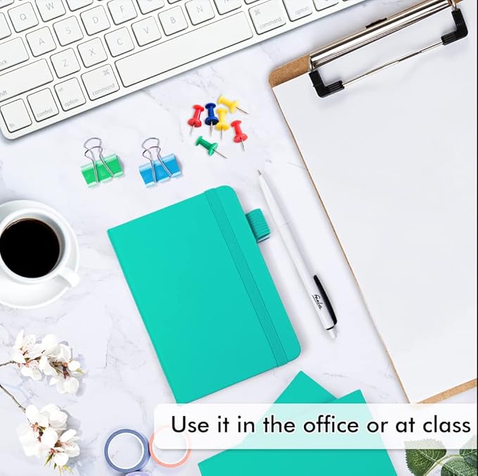 feela 3 Pack Pocket Small Notebook Journals, Mini Cute Memo Notepad Hardcover College Ruled Lined Journals with Pen Holder for Women Girls Office School, with 3 Black Pens, 3.5”x 5.5”, A6, Aqua