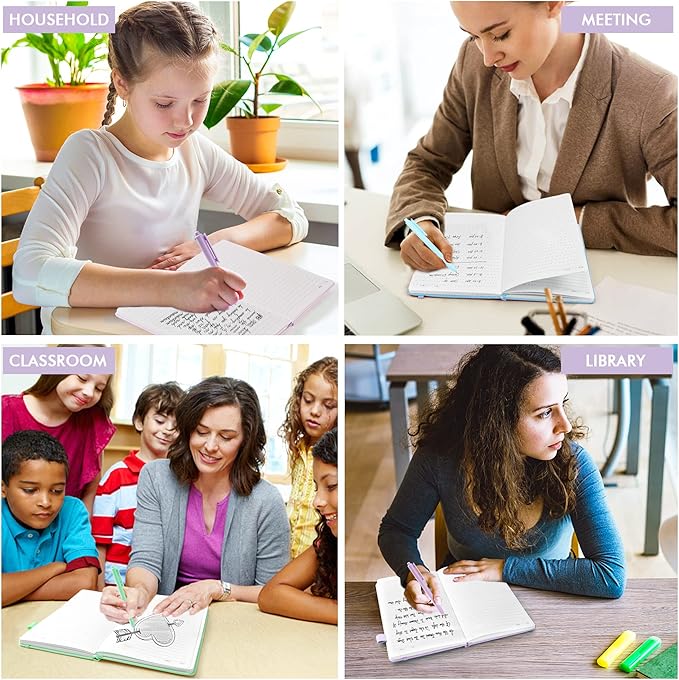 - 3 different pastel colors for these notebooks, Light Blue, Light Purple and Light Green. There are 3 Black Retractable Pens in the box. You can use it as soon as you receive it. These pens are perfect to be put in the pen holder of the classic ruled notebook. Large tube has the capacity of restoring more ink, which makes them long lasting. Quick drying can avoid smearing and smudge.
