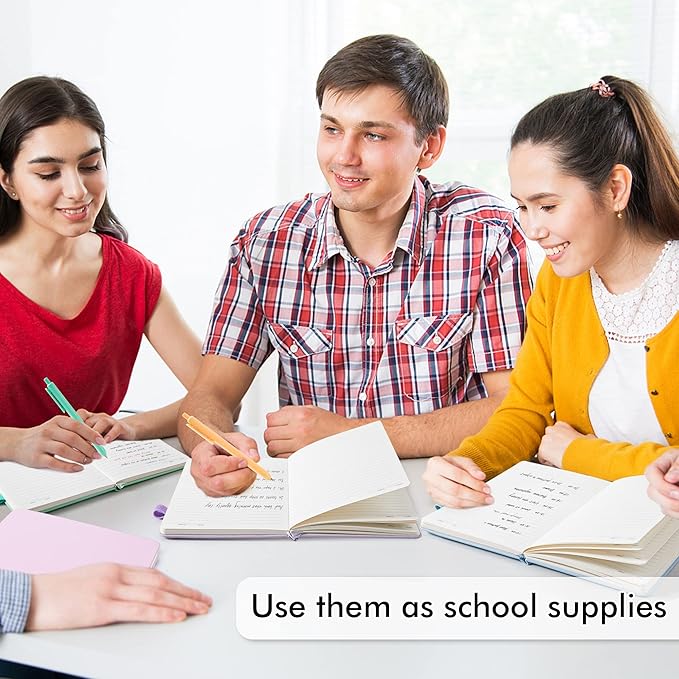 - 5 different pastel colors for these notebooks. There are 5 Black Retractable Pens in the box. You can use it as soon as you receive it. These pens are perfect to be put in the pen holder of the classic ruled notebook. Large tube has the capacity of restoring more ink, which makes them long lasting. Quick drying can avoid smearing and smudge.