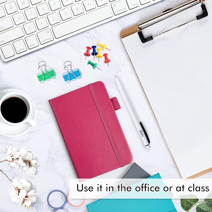 feela Pocket Notebook Journals, Mini Cute Small Hardcover College Ruled Notepad Office School Supplies, with 3 Black Pens, 3.5”x 5.5”, 3 Pack, A6, Solid Colors, Gray, Berry, Emerald