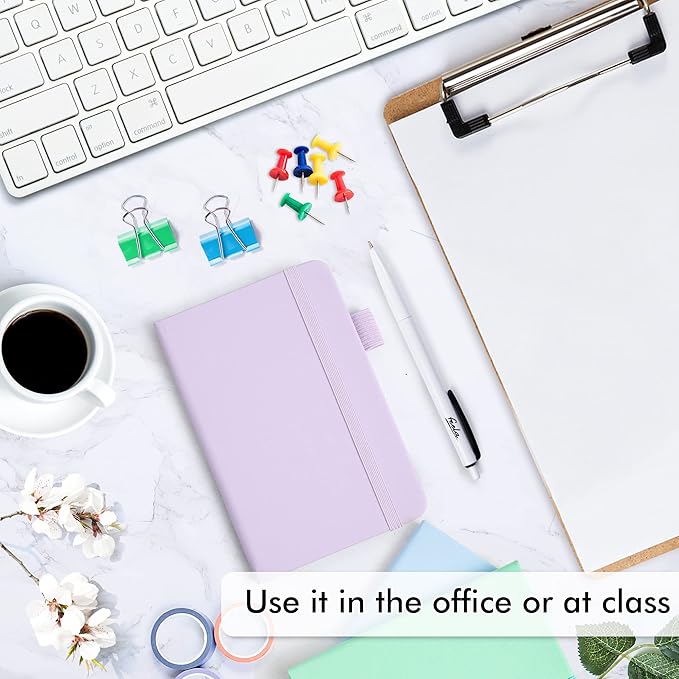 feela 3 Pack Pocket Small Notebook Journals, Mini Cute Hardcover College Ruled Notepad Women Office Supplies, with 3 Black Pens, 3.5”x 5.5”, A6, Pastel Colors, Light Blue, Light Purple, Light Green
