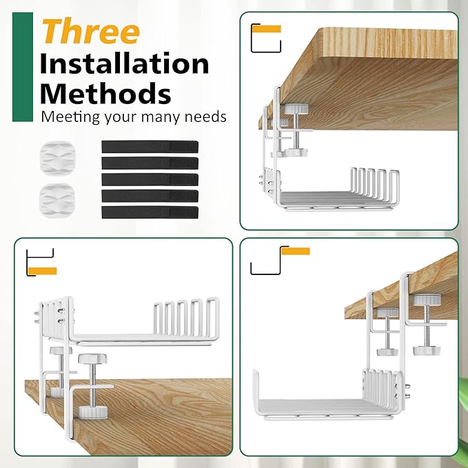 - SILICONE DESIGN : Soft rubber pads on adjustable and removable clamps protect your desk or table from scratches. No Dust Accumulation, Anti-overheating, Flexible cable adjustment, Extra large capacity.
