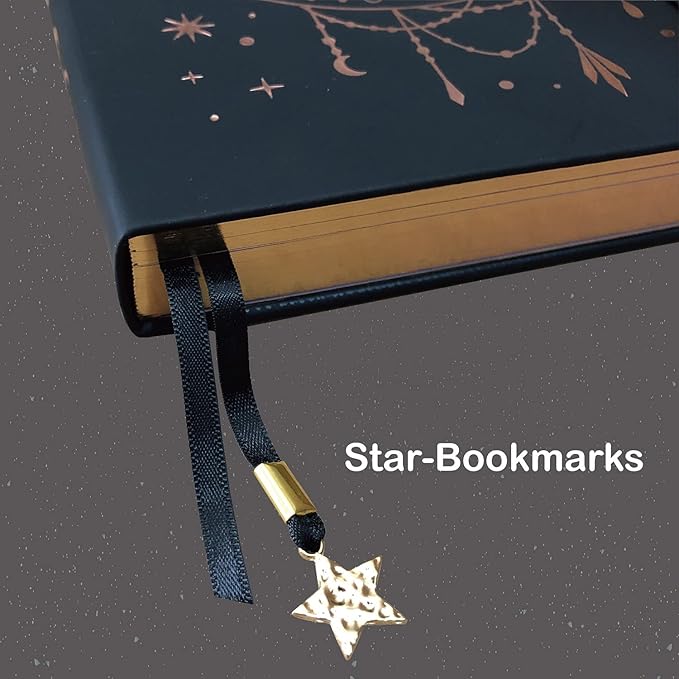 BUKE Medium A5 Hardcover Notebook Dotted Journal - 180Gsm Thick Bamboo Paper - 160 Dot Grid Pages 5x5 MM - Black Color Faux PU Leather Cover - Rose Gold Edge And Moons (A5, Black)