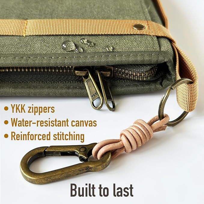 - Premium Waxed Canvas & YKK Zippers – Built from 12 oz water‑resistant waxed canvas with a textured polyester lining and heavy‑duty bronze YKK double zippers for long‑lasting durability.