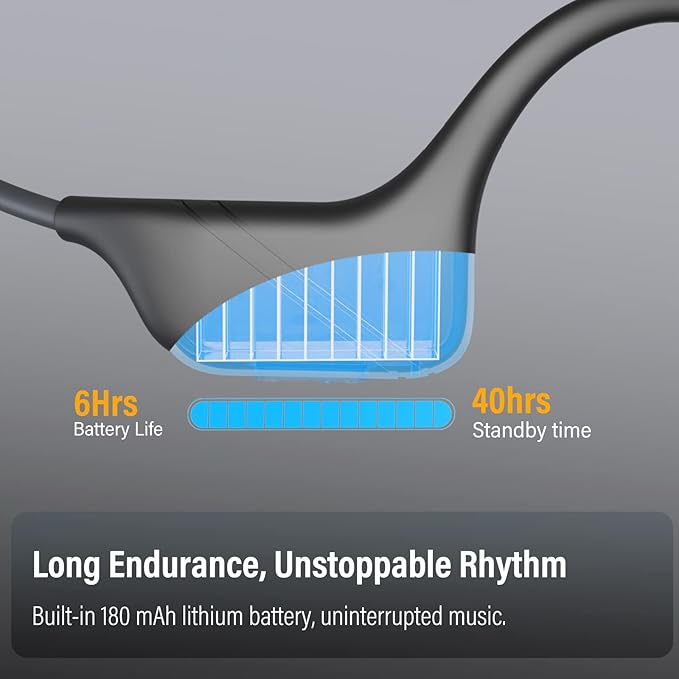 - Comfort and Durability: This bluetooth headphones with microphone weigh only 33 g. The skin-friendly soft silicone ear pads and ergonomic design, make you barely feel it on your head. The aluminum alloy backhanging and ear hang of the bone headphones is strong and durable, tight close to the ear back that is stable without shifting or falling off. Bring your ears a comfortable wearing experience even when wearing a helmet and glasses