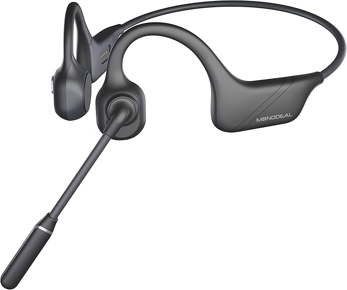 MONODEAL Bone Conduction Headphones with Mic, Bluetooth 5.3 Open Ear Headphones with Noise-Canceling Boom Microphone, Wireless Headset Earphones for Work, Driving, Home Office Commercial