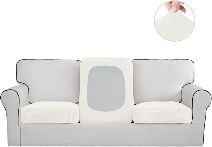 Easy-Going Stretch Individual Chair Couch Cover Sofa Furniture Protector Slipcover - Soft Flexibility With Elastic Bottom (3-Piece Cushion Cover, Cream)