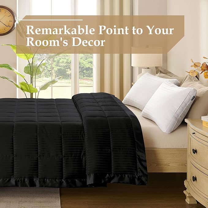 - Supreme Comfort: Our blanket featuring premium 135 GSM down alternative fill that stays fluffy and evenly distributed without clumping or odors. The elegant stripe jacquard design is finished with 3-inch satin binding for a luxurious drape, perfect for stylish bedding