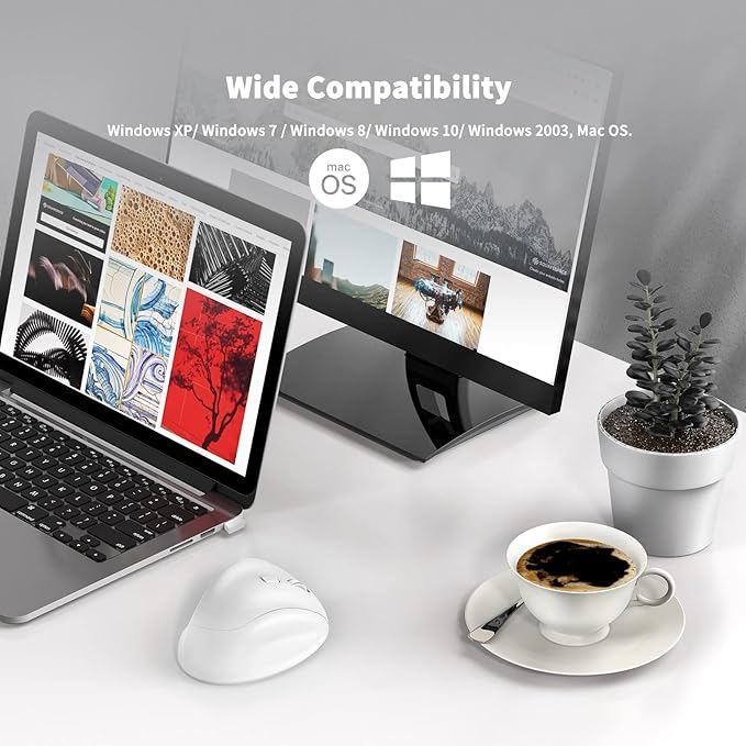 - Ergonomic Design: Ambidextrous vertical mouse with silent clicks and long battery life