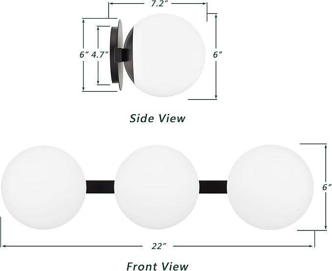 - EXCEPTIONAL DESIGN - The black vanity light has its roots in mid-century design, featuring spherical Opal glass shade to provide bright, yet diffused lighting to the environment. Perfect to complement contemporary or transitional home décor, suitable for your bathroom and above mirrors.