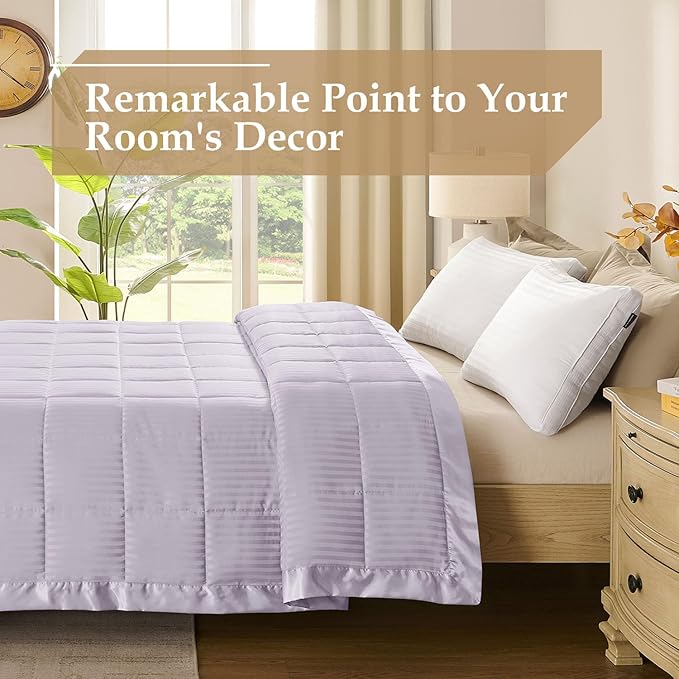 - Supreme Comfort: Our blanket featuring premium 135 GSM down alternative fill that stays fluffy and evenly distributed without clumping or odors. The elegant stripe jacquard design is finished with 3-inch satin binding for a luxurious drape, perfect for stylish bedding