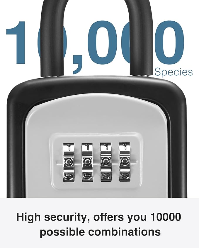 - High-Security Lockbox: Resettable 4-digit code offers you 10,000 possible combinations. The 4-digit combination is easy to remember and reset, not easy to be cracked and ensures the security of your keys.